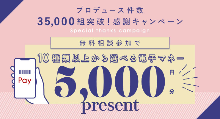 会場・人数・ゲスト会費などにより、自己負担0円でのご提案も可能です。どのようなプランをご希望か、無料相談にてご相談ください。