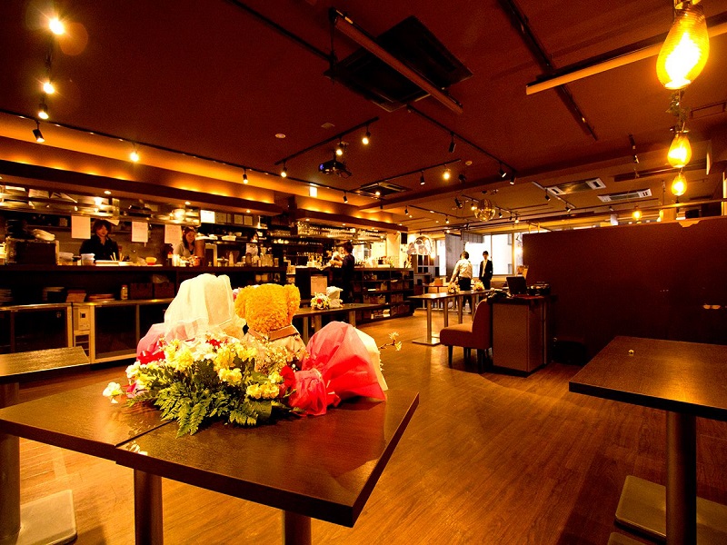 高い天井と全面ガラス張りの店内は開放感溢れるパーティーが可能。柱が少ないのでパーティーシーンにぴったりです!